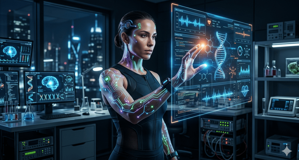 Usa tecnologia para coletar, analisar e interpretar dados biológicos em tempo real, transformando o corpo em um sistema monitorado com a mesma precisão que um atleta de elite ou um paciente de UTI.